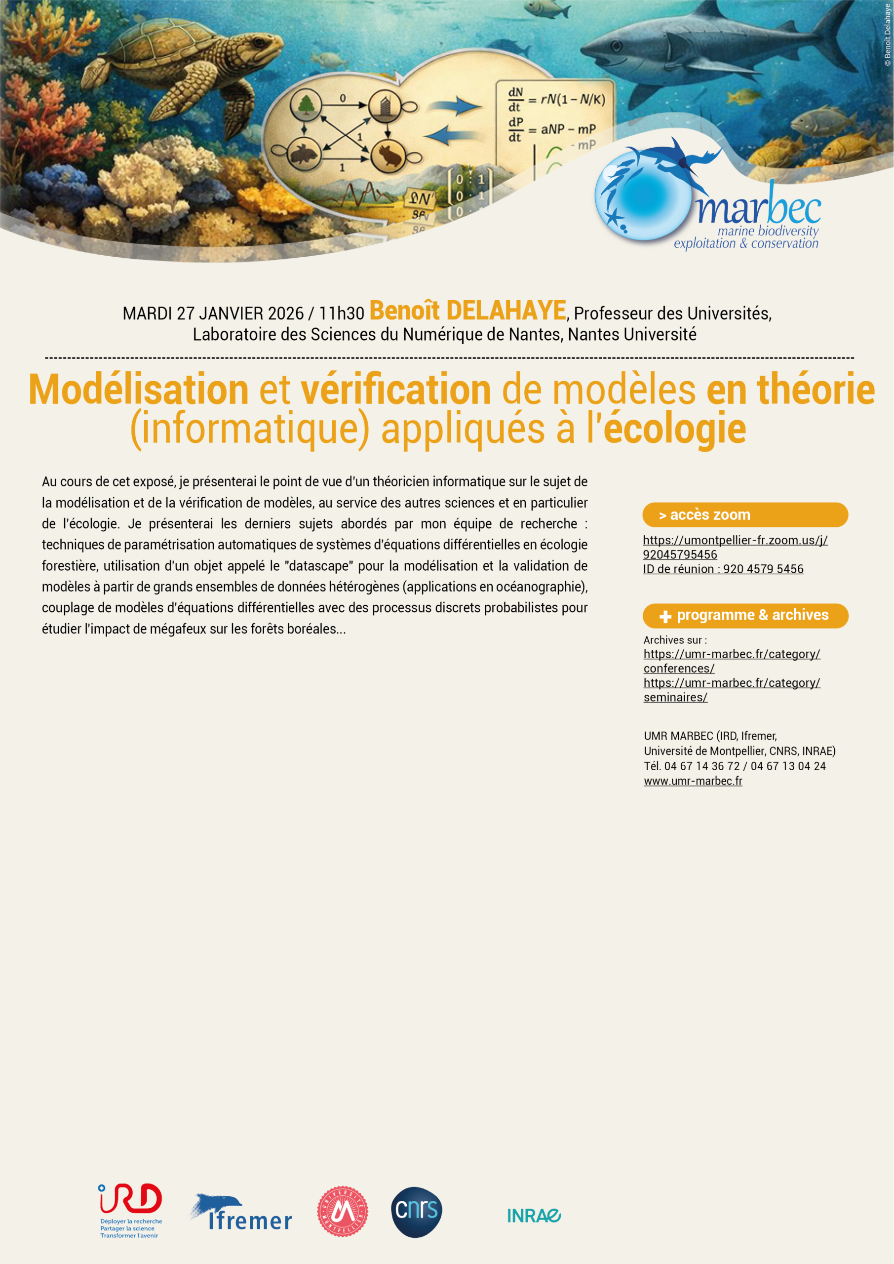 Le 27/01/2026 à 11h30, « Modélisation et vérification de modèles en théorie (informatique) appliqués à l'écologie »